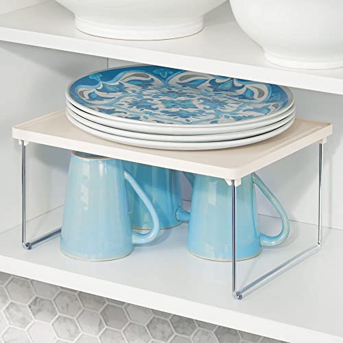 MDesign Mensole porta piatti impilabili - Ripiano antiscivolo adatto al piano di lavoro e alla credenza della cucina - Portapiatti da appoggio in plastica con gambe in metallo - crema