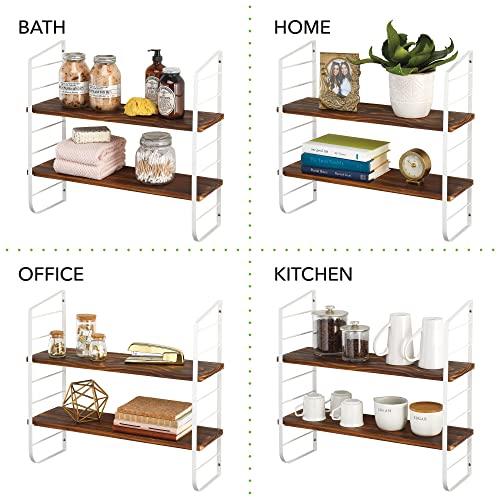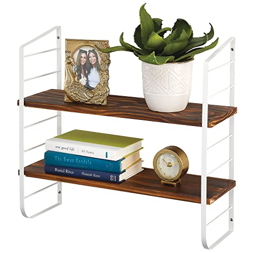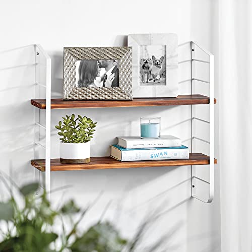 MDesign Moderno scaffale da parete a 2 ripiani - Mensole da muro in legno con staffe in metallo resistenti alla ruggine - Ripiano da appendere con 2 mensole per bagno, ecc. - bianco/naturale