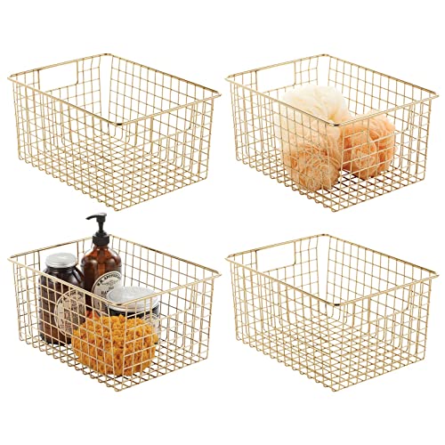 MDesign Organizer bagno per cosmetici, saponi, accessori - Cesta portaoggetti per bagni, scuola, camere da letto, cucine, uffici, garage - Cesta metallo con maniglie incorporate - Set da 4 - ottone
