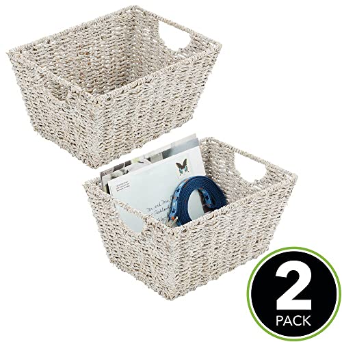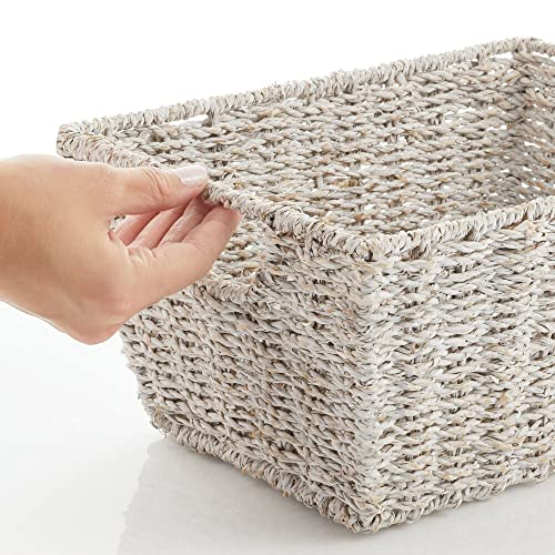 MDesign Organizer casa in Alga Marina con Maniglie - Scatola salvaspazio per Camera, Soggiorno, Bagno e corridoio - Porta riviste per Vari Articoli casalinghi - Set da 2 -Bianco