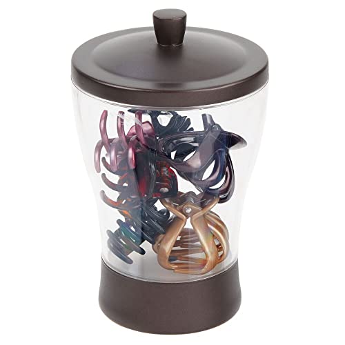 MDesign Set da 2 Organizer cosmetici - Contenitore in plastica per sali da bagno, dischetti struccanti, elastici per capelli, ecc. - Versatile barattolo con coperchio - trasparente e bronzo