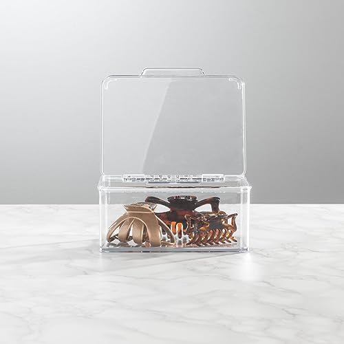 MDesign Set da 2 organizer per cosmetici - Pratici contenitori in plastica con coperchio - Portaoggetti trasparenti ideali per trucchi, cosmetici, accessori da bagno e gioielli - trasparente
