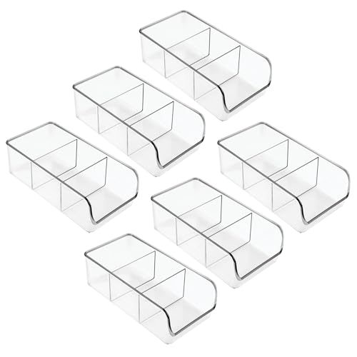 MDesign Organizer Cucina per aromi in bustina, lievito, zuppe, minestre ECC. - Contenitore plastica a 3 Scomparti per dispensa e Piani Lavoro - Pratico Porta spezie - Set da 6 - Trasparente