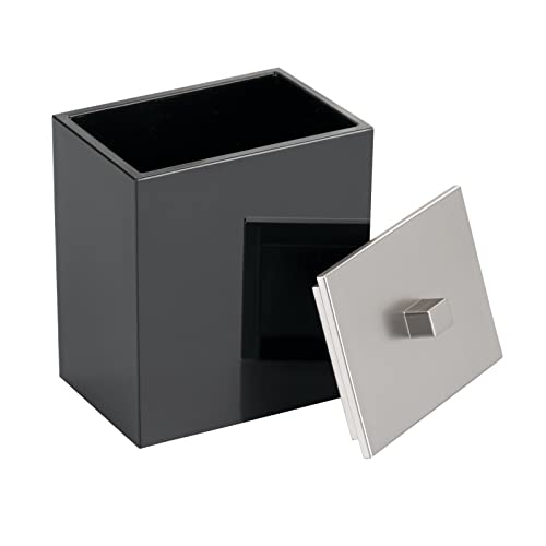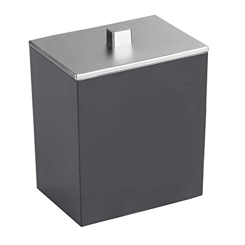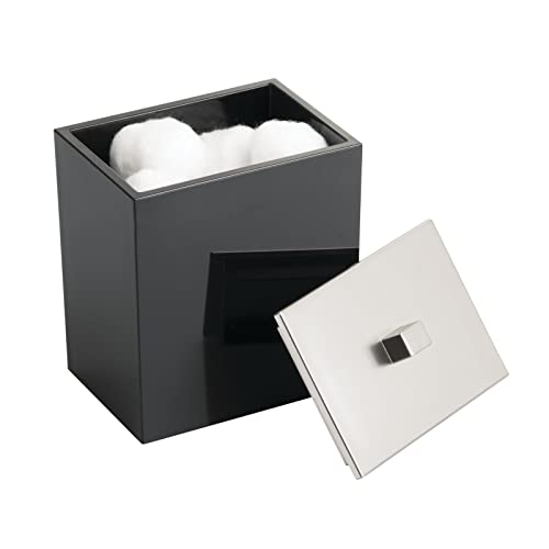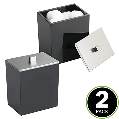 MDesign Set da 2 Organizer dischetti struccanti - Contenitore cotton fioc con pratico coperchio - Set accessori bagno ideale per conservare cosmetici, fermagli per capelli, ecc. - nero/argento
