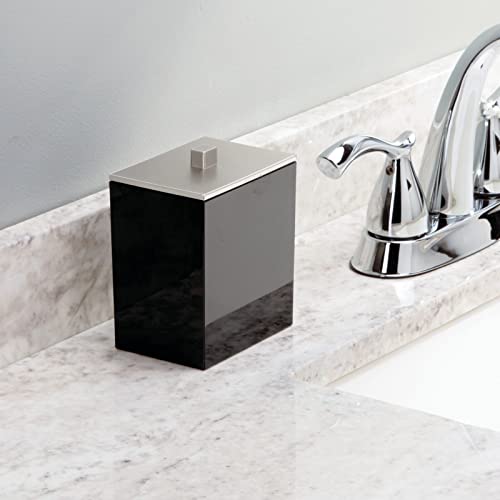 DESIGN MODERNO: Realizzato in plastica nera con coperchio color argento, il porta cotton fioc e contenitore talco si integra perfettamente in ogni arredo del bagno e camera da letto.