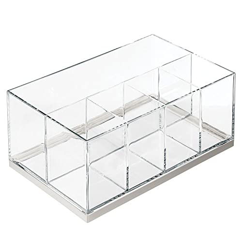 MDesign Organizer make up con 5 scomparti - Porta trucchi per pennelli, mascara, smalti e molto altro - Organizzatore trucchi in plastica per ripiani o armadietto - trasparente/argento opaco