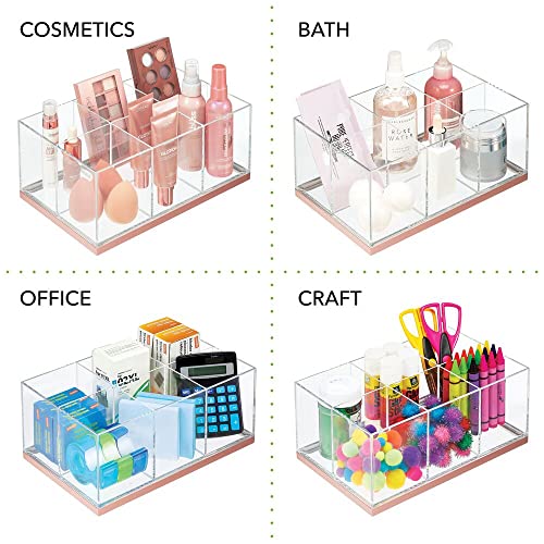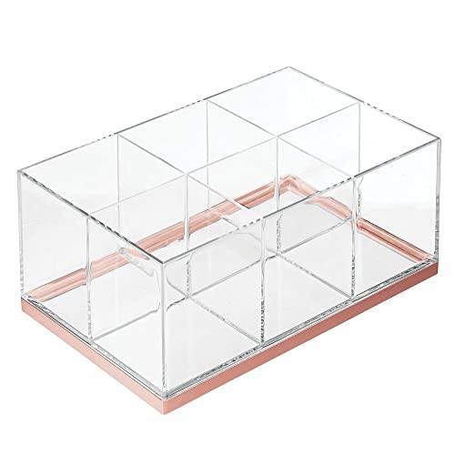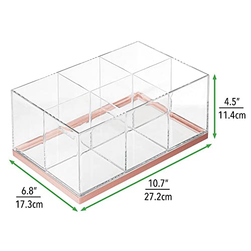 MDesign Organizer make up con 6 scomparti - Porta trucchi per pennelli, mascara, ombretti, smalti e molto altro - Organizzatore trucchi in plastica per ripiani o armadietto - trasparente/oro rosato
