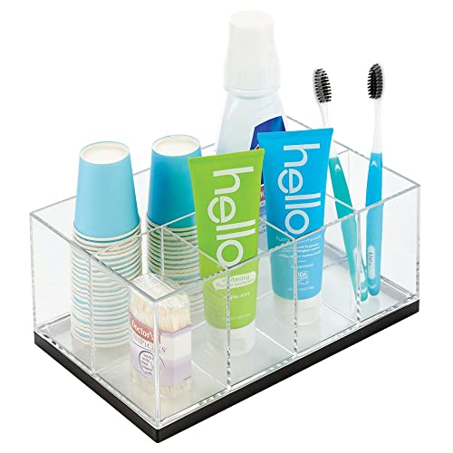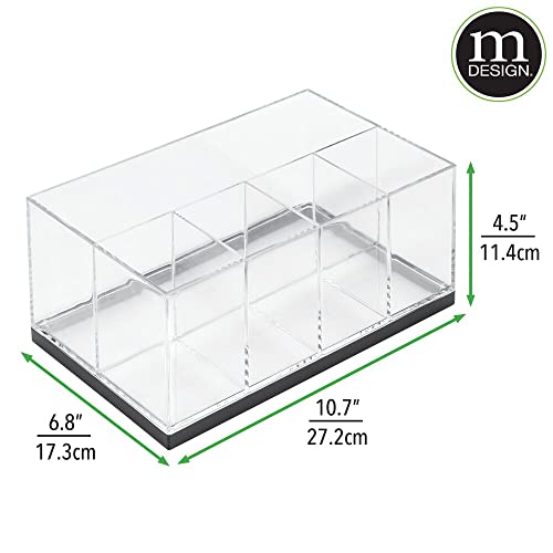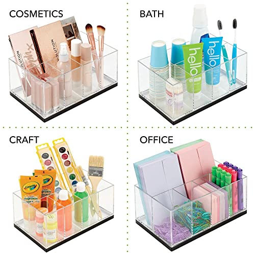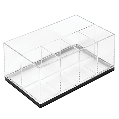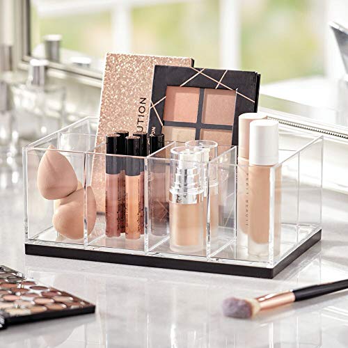 MDesign Organizer make up con 5 scomparti - Porta trucchi per pennelli, mascara, smalti e molto altro - Organizzatore trucchi in plastica per ripiani o armadietto - trasparente/nero