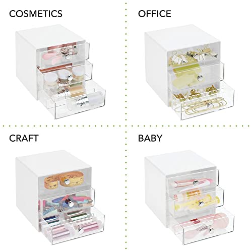 MDesign Set da 2 Organizer porta occhiali - Portaocchiali in plastica con 3 cassetti - Scatola portaoggetti ideale per occhiali da vista, da sole o da lettura - trasparente e bianco
