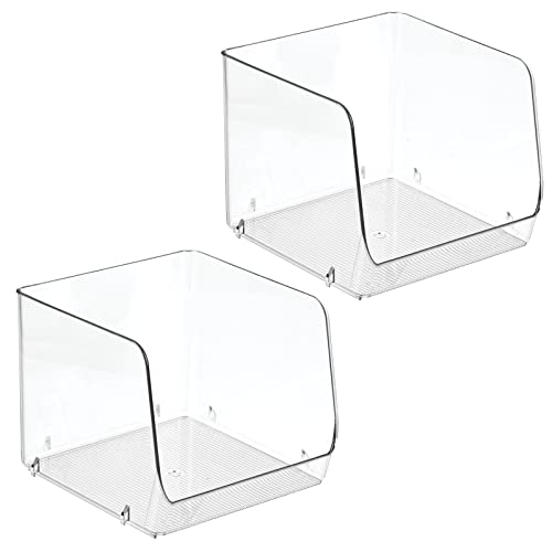 MDesign set da 2 organizer salvafreschezza - Portaoggetti impilabile ideale per cucina, credenza e frigorifero - Colore: trasparente