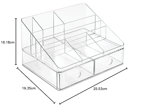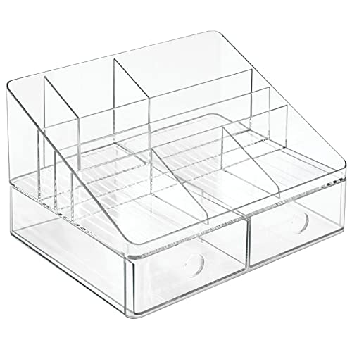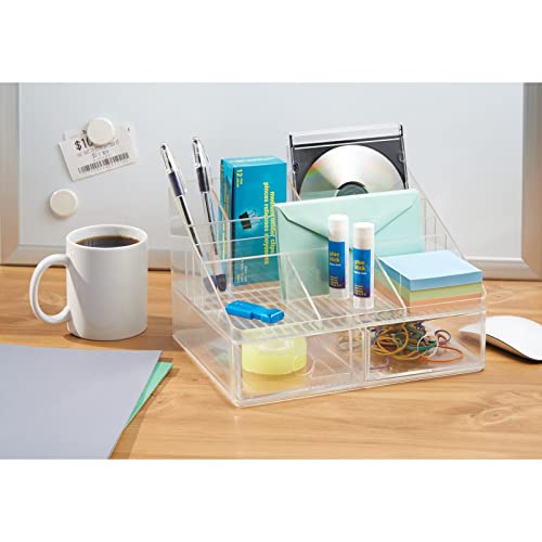 MDesign Organizer Scrivania e Ufficio - portaoggetti scrivania e da tavolo con 6 vani e 2 cassetti - organizer ideale per graffette, penne e altri accessori - Colore: trasparente