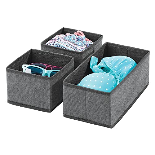 MDesign Set da 3 Organizer in stoffa - Contenitore portaoggetti in fibra sintetica per calze, biancheria, leggins, ecc. - Versatili box per cassetti per camera da letto - grigio ardesia/nero