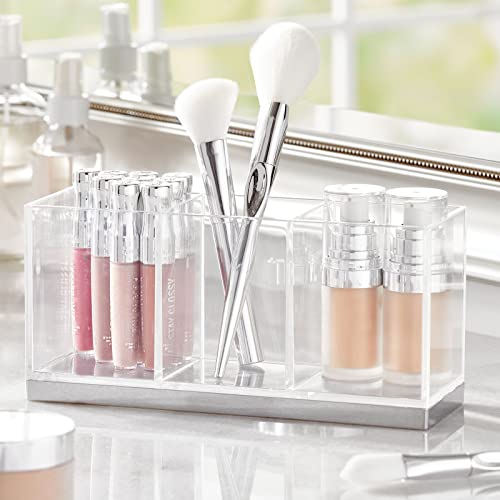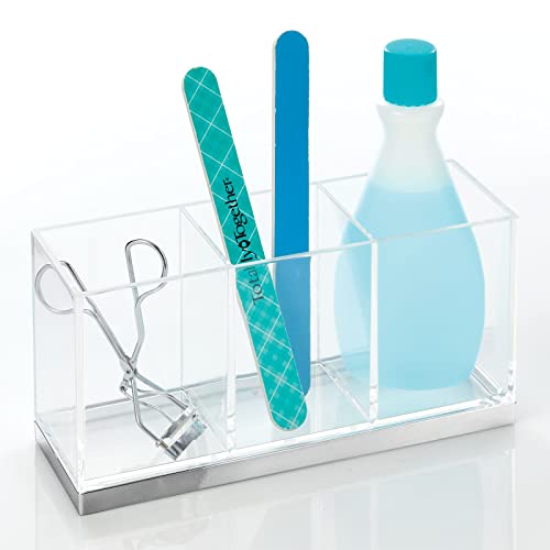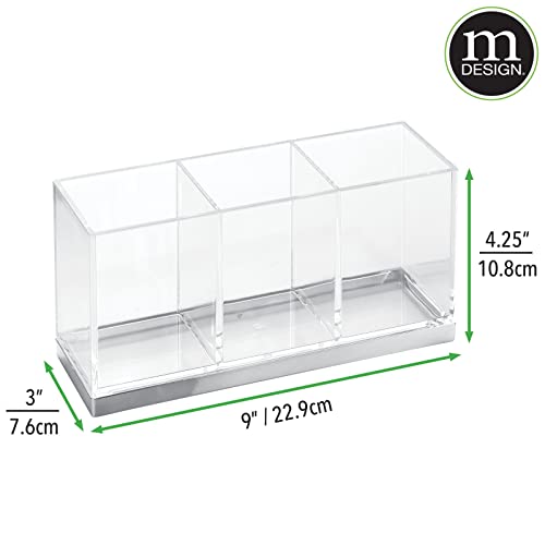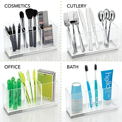 MDesign Organizer trucchi - Porta trucchi trasparente in plastica a 3 scomparti per organizzare cosmetici - Pratico porta pennelli trucco - Trasparente/Argento