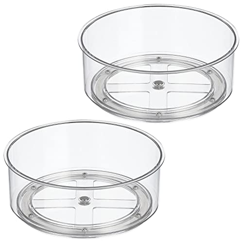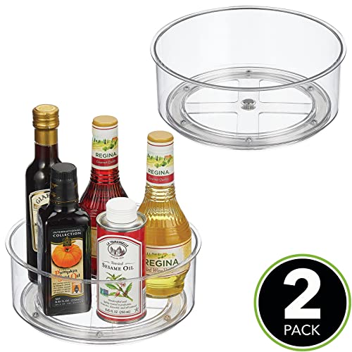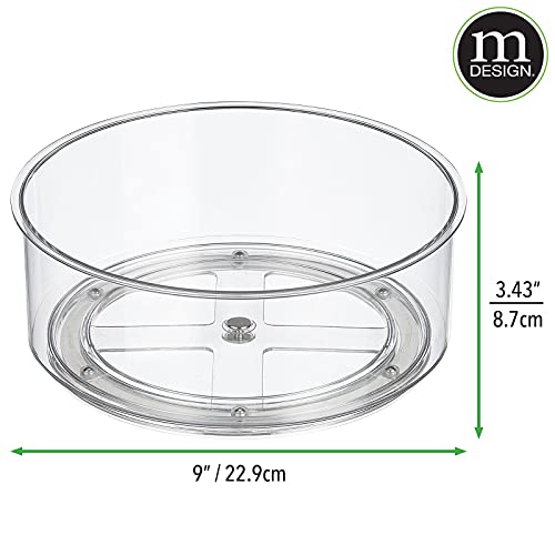 MDesign Piatto girevole porta spezie - Vassoio porta barattoli e spezie, per pepe, olio e conserve - Organizer girevole in plastica e acciaio perfetto per la credenza - Set da 2 - trasparente