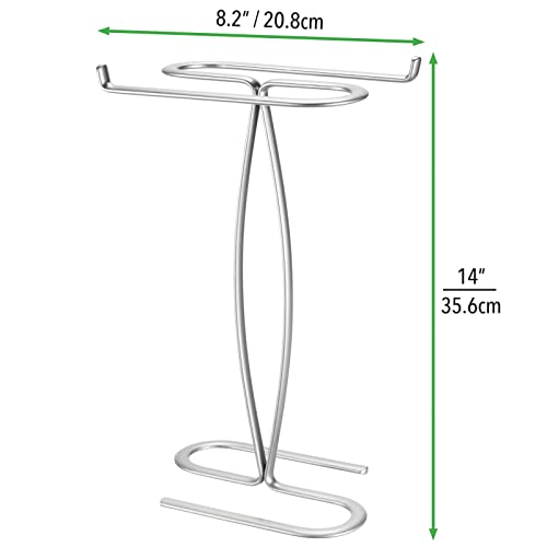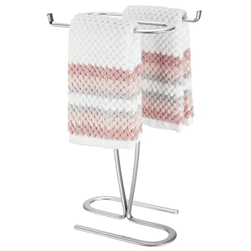 MDesign Piccolo portasciugamani da appoggio perfetto come portasalviette bagno degli ospiti - Piccolo porta asciugamani in metallo - Appendi asciugamani per il lavello con due anelli - argento