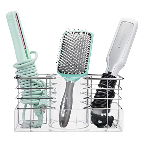 MDesign porta arricciacapelli - organizer ideale per asciugacapelli, piastra per capelli - colore acciaio cromato - 3 sezioni