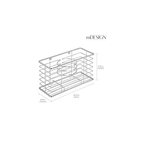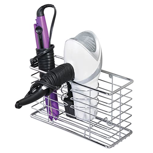 MDesign Porta asciugacapelli da appendere - Comodo cestello portaoggetti bagno per phon, piastra e spazzole - Porta phon multiuso a 3 scomparti - argento