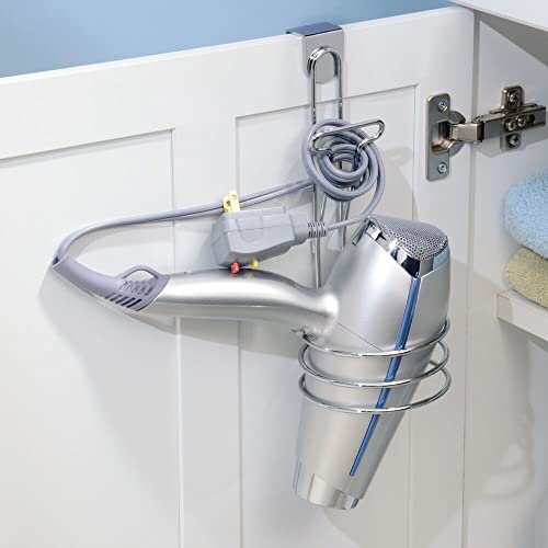 MDesign Porta asciugacapelli pratico quanto elegante in metallo - Organizer bagno salvaspazio - Porta phon da bagno da appendere - Pareti e ante dei mobili intatti - argento