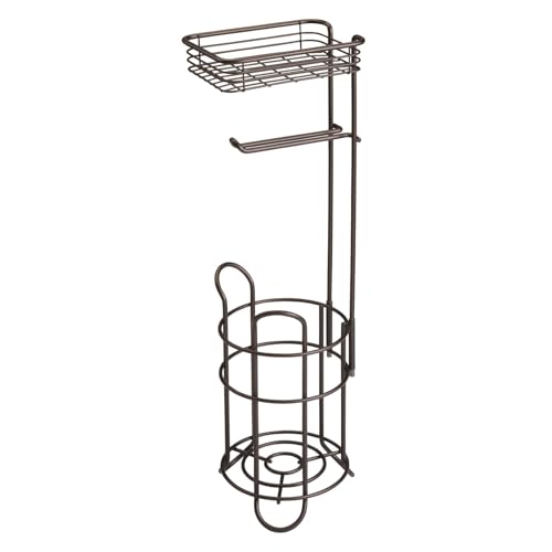 MDesign Porta carta igienica autoportante - Con mensola - Pratico porta rotolo bagno in metallo - Funzionale portarotolo carta igienica da terra - Colore: bronzo