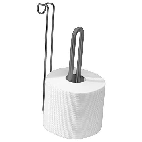 MDesign Porta carta igienica di scorta - Sostegno per rotoli di carta igienica per massimo 2 rotoli - Portarotolo bagno da appendere allo sciacquone senza viti - grigio
