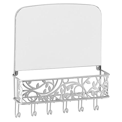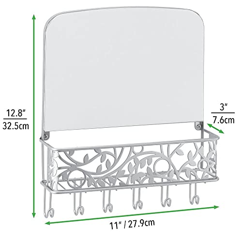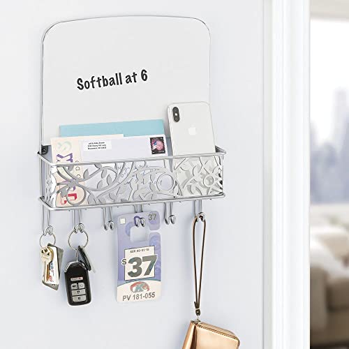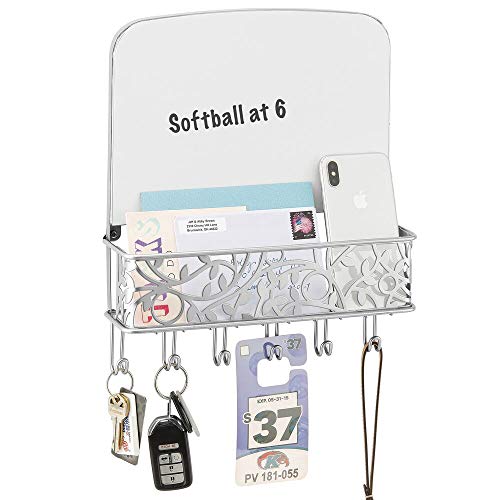 MDesign Porta chiavi da parete con 6 ganci - Appendi chiavi a muro con cestello per posta, riviste, dépliant ecc. - Portalettere da muro con lavagna magnetica - argento