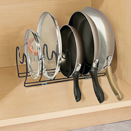 MDesign Porta coperchi pentole per ottimizzare lo spazio - Porta padelle in metallo per pensili e ripiani in cucina - Rastrelliera per cucina con 6 scomparti ciascuno - Set da 2 - nero