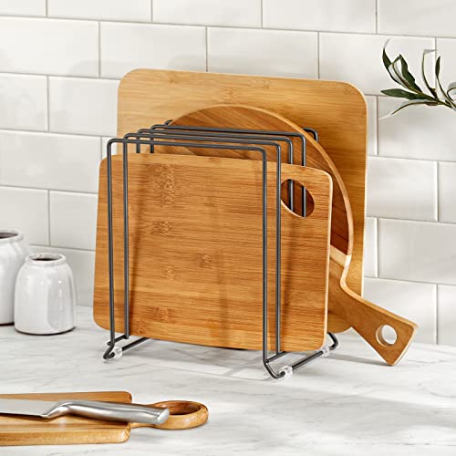 MDesign Porta padelle e teglie in metallo - Compatto porta coperchi pentole per la credenza della cucina - Portacoperchi salvaspazio per stoviglie - grigio scuro