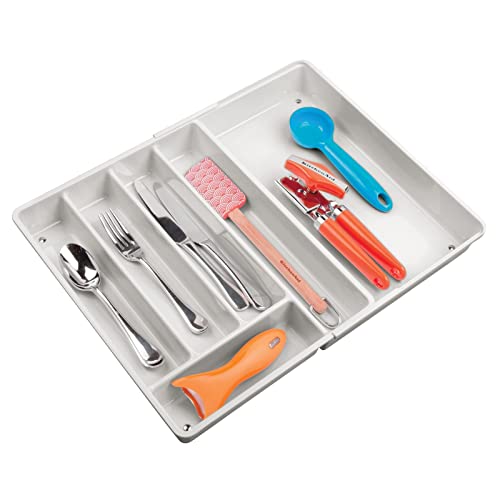 MDesign Porta posate allungabile a 6 scomparti - Funzionale portaposate da cassetto in plastica robusta - Versatile organizer cucina, ufficio, bagno e camera da letto - grigio chiaro