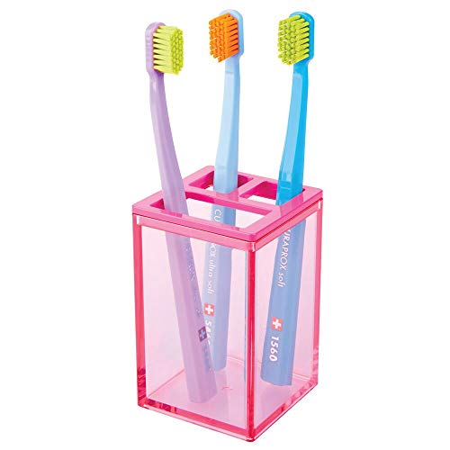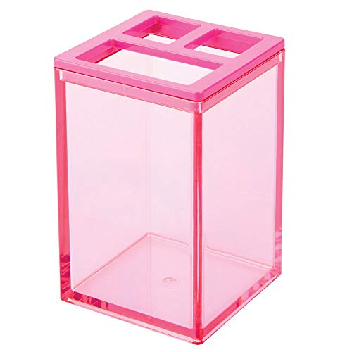 MDesign Porta spazzolini da appoggio - Bicchiere portaspazzolini per 2 spazzolini e tubetto di dentifricio - Contenitore per spazzolini con 3 scomparti - rosa