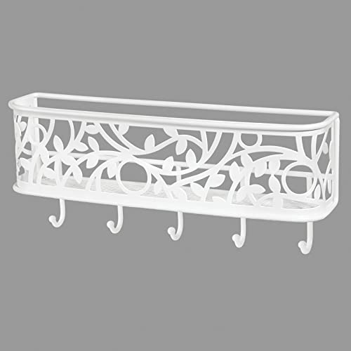 MDesign Portachiavi multiuso in metallo - Elegante porta chiavi da parete ideale per l'ingresso - Portachiavi con vaschetta portacorrispondenza e 5 ganci da appendere al muro - bianco opaco