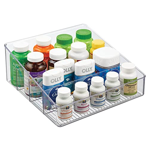 MDesign Portaoggetti bagno a 4 scomparti - Portatrucchi e organizer ideale per conservare cosmetici, sapone, utensili bagno - Ottimo organizer trucchi in resistente plastica - trasparente