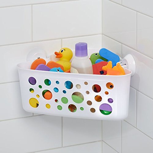 MDesign Portaoggetti Doccia angolare da appendere con ventose - Cesto in plastica per bambini da usare come porta shampoo, bagnoschiuma, giochi - Montaggio istantaneo