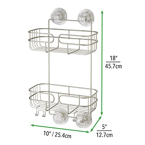 MDesign Portaoggetti per Doccia da Appendere all'anta - Pratica mensola Doccia per Accessori da Bagno e flaconi - Organizer per Doccia in Metallo con 2 Ripiani e 2 Ganci in Metallo - Argento Opaco
