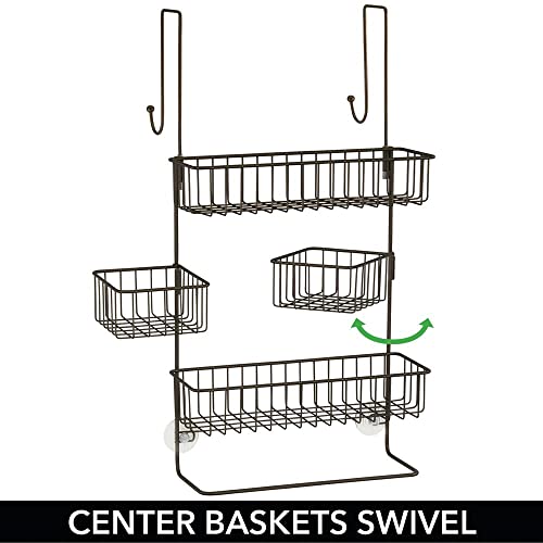 MDesign Portaoggetti per doccia da appendere - Pratica mensola doccia con 4 ripiani, 2 ganci e un'asta per le spugne - Scaffale per doccia in metallo facile da installare - bronzo