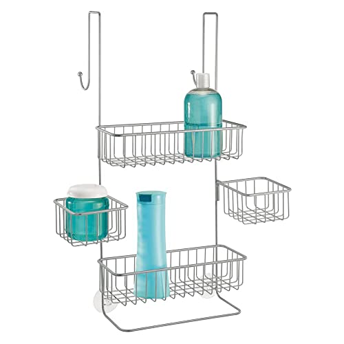 MDesign Portaoggetti Doccia da Appendere Senza forare la Parete - Organizer Doccia in Metallo - Mensola Doccia con cestelli per Shampoo, bagnoschiuma e Altro - Argento