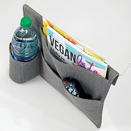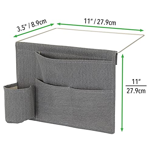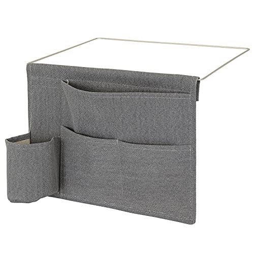 MDesign Portaoggetti da letto appendibile - Spazioso organizer in cotone - Con 4 tasche - Tasche portaoggetti laterali per bottiglie d'acqua, telecomando, tablet, orologio & Co. - grigio scuro