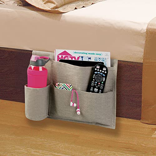 MDesign portaoggetti letto grigio - tasche portaoggetti per cellulare, telecomando, riviste, occhiali - vano portaoggetti per il letto - 4 tasche