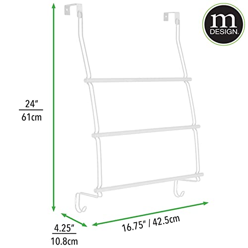 MDesign Portasciugamani da porta regolabile in metallo per doccia e bagno, appendiabiti a 3 livelli con 2 ganci per il bagno, per appendere asciugamani, coperte, salviette, spugne sul retro della