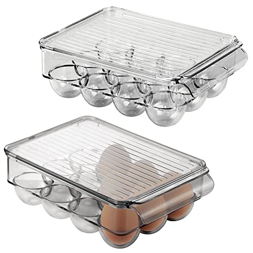 MDesign Set da 2 Portauova per 12 uova - Grande contenitore uova impilabile con coperchio e manici - Organizer frigo in plastica robusta - grigio fumo