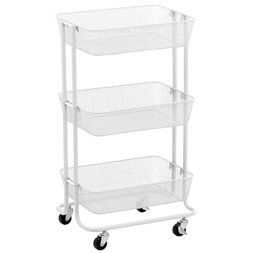 MDesign Pratico carrello con ruote ideale per tutti gli ambienti - Scaffale cucina con rotelle a 3 scomparti - Sostituisce gli scaffali per garage, lavanderia o cucina - bianco