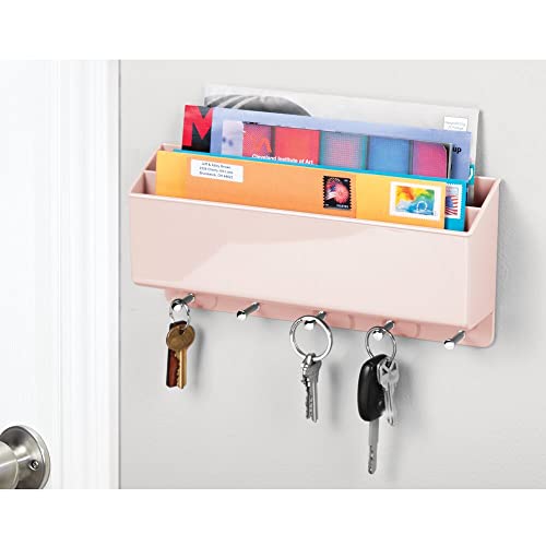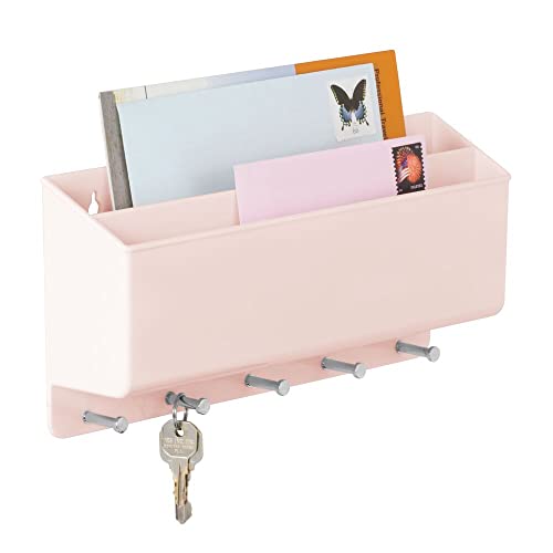 MDesign Pratico portacorrispondenza da muro - Compatto porta chiavi da parete con 2 scomparti per la posta e 5 ganci - Portachiavi multiuso per parete in plastica e metallo - rosa chiaro