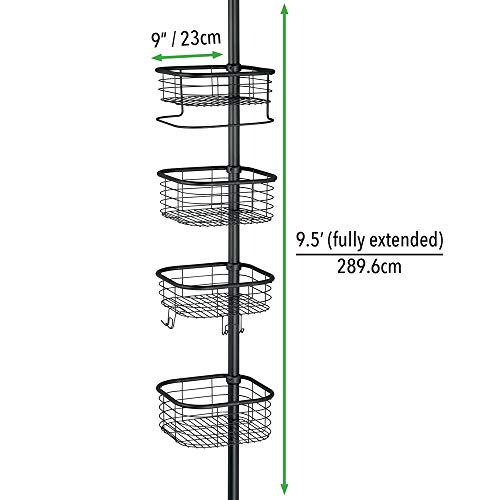MDesign Scaffale per doccia con montaggio senza fori - Portaoggetti allungabile con 4 cesti per accessori doccia - Struttura ad angolo con ripiani per flaconi e spugne in metallo e plastica - nero
