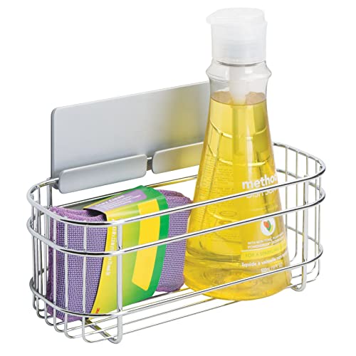 MDesign scaffale a muro AFFIXX porta sacchetti plastica - porta spugne autoadesivo per spugne, detersivi, e altri oggetti da cucina - Colore: metallo