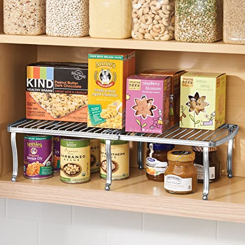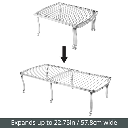 MDesign Set da 2 Scaffali cucina regolabili per la credenza - Pratico porta piatti e porta stoviglie in metallo con superficie d'appoggio - Accessorio antiscivolo estraibile - argento