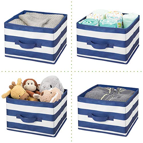 MDesign Set da 2 Scatole Armadio per Indumenti, Accessori, Giochi ECC. - Contenitori per armadi di Media grandezza in Fibra Sintetica con Manico - Organizer Armadio a Strisce - Blu Navy e Bianco