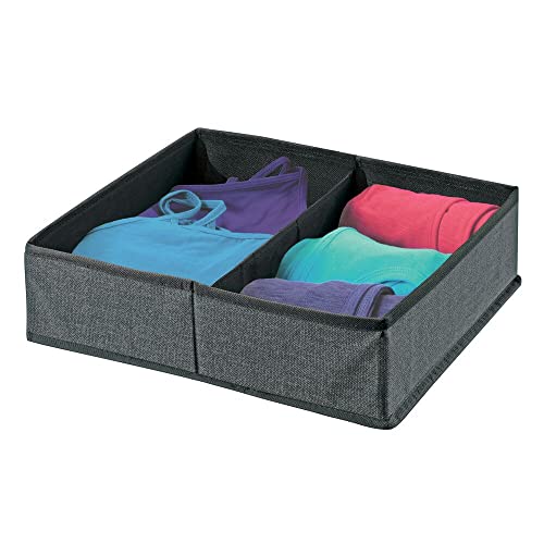 MDesign Scatole Guardaroba in Tela - Box portaoggetti per armadi e cassettoni con Due Scomparti - Organizer Multiuso in Tela per Calze, Biancheria Intima ECC - Grigio Scuro