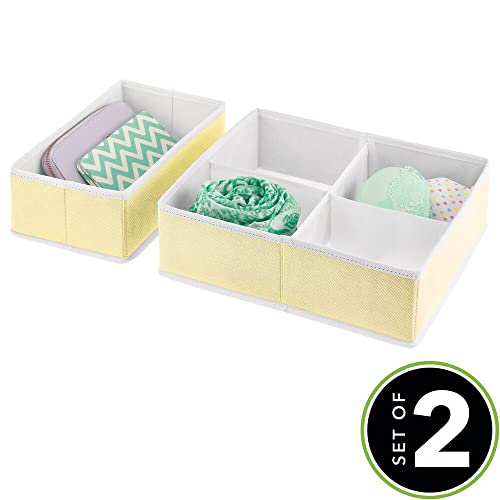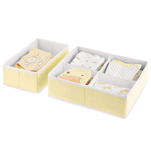 MDesign Set da 2 scatole Porta Oggetti - Scatole per armadi in Tessuto in 2 Misure per i Vestiti dei Bambini - Divisori per cassetti Pieghevoli per riporre ciucci, Bavaglini & co. - Giallo/Bianco