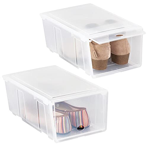 MDesign Set da 2 Scatole porta scarpe piccole in plastica - Scatole per scarpe impilabili con sportello apribile - Pratico organizer per armadio - trasparente opaco