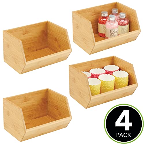 MDesign Scatole portaoggetti aperte e impilabili — Contenitore in legno di bambù ecologico — Cassetta porta tutto polivalente per mobili da cucina — Set da 4 — naturale