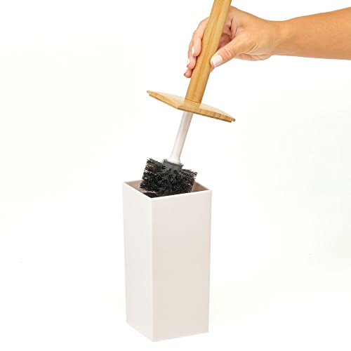 MDesign Scopettino WC con Sostegno - Scopino Bagno Impugnatura in bambù e portascopino in plastica - Scovolino WC dal Design Moderno per Toilette - Crema/Naturale